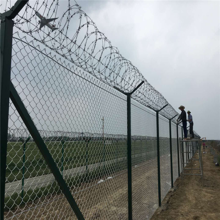機(jī)場(chǎng)圍界廣泛應(yīng)用于各大飛機(jī)場(chǎng)的邊界,用作邊界圍欄防護(hù)網(wǎng),還可以用于港口圍界防護(hù)、碼頭鋼絲防護(hù)網(wǎng)、“飛機(jī)場(chǎng)防護(hù)護(hù)欄網(wǎng)、 Y型安