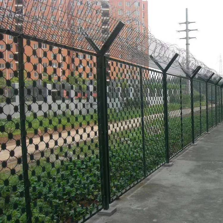 監(jiān)獄梅花剌隔離網(wǎng)又叫沖壓刺隔離網(wǎng)、太陽花刺片隔離網(wǎng),行業(yè)內(nèi)簡稱梅花刺網(wǎng)。其特點為堅固牢靠、防止攀爬等。梅花剌隔離網(wǎng)一般用于